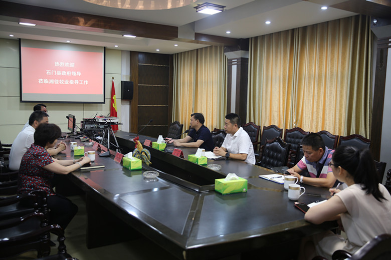 7月4日,石門縣人民政府副縣長韓翼飛、縣工信局局長田輝來到湘佳牧業調研企業文化建設.